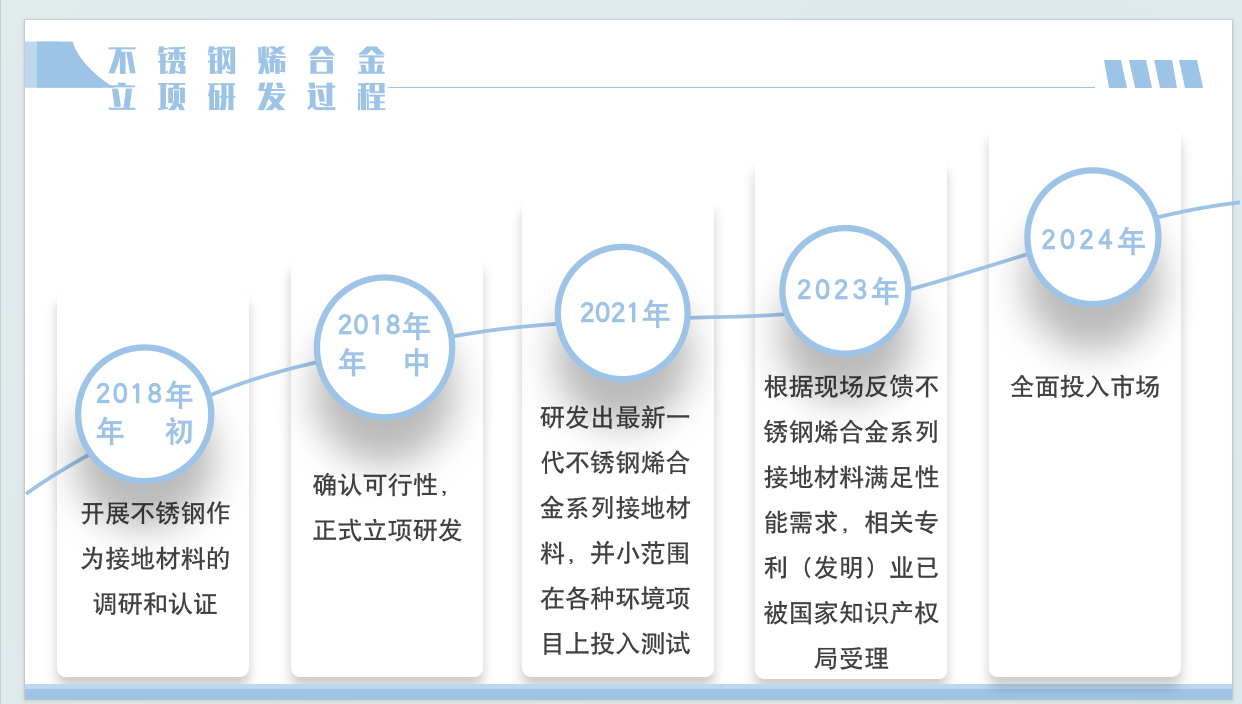 采用外層0.7mm不銹鋼(標(biāo)號根據(jù)使用環(huán)境選擇)經(jīng)過石墨烯專有配方處理后包覆高導(dǎo)性的合金材(合金材表層也經(jīng)過石墨烯專有配方的涂層處理)經(jīng)過激光焊、拉拔、退火再拉拔、再退火形成的一種導(dǎo)電性優(yōu)越、耐腐蝕能力強的一種新型接地材料。
